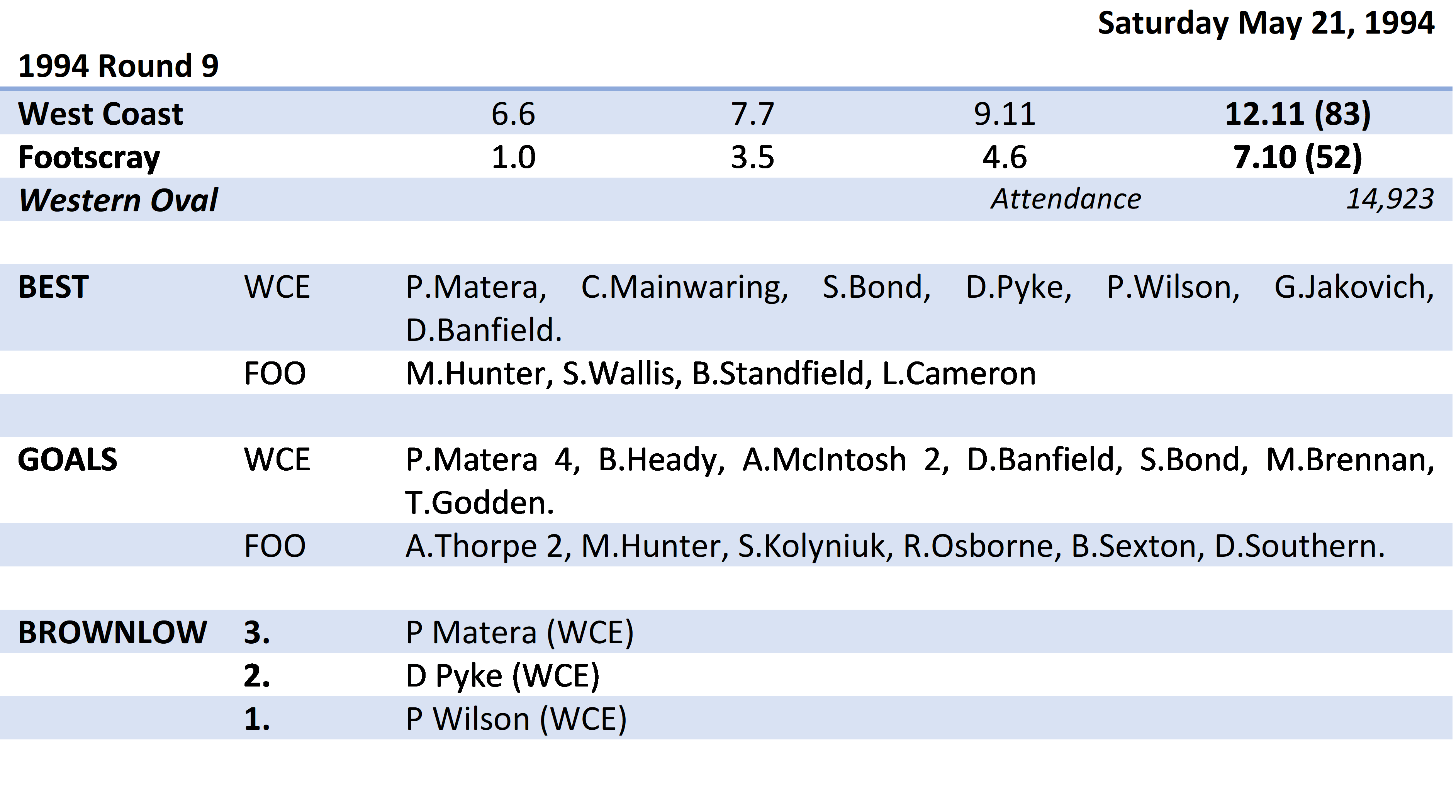 defeat in the penultimate round of 1993 which ultimately cost West Coast a top