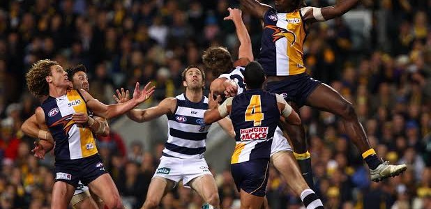 Collecting the ball on the bounce near the boundary line and cornered by two Geelong defenders, Nicoski fashioned a checkside effort as he was falling backwards that purely defied his two earlier misses from dead in front. That put West Coast in front with Mark LeCras extending the Eagles lead to ten points at the first change in the dying seconds.