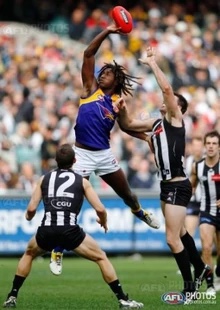 A tense opening fifteen minutes had seen Stephen Milne kick a long range goal to restore St Kilda’s lead before Naitanui produced a wondrous effort from a boundary throw-in in the forward pocket, where he took possession, raced clear of the pack of players and snapped truly on the run to have the Eagles back in front.
